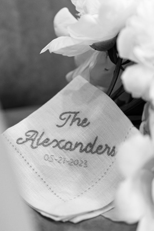 Custom Embroidered Wedding Handkerchief – Personalized with Last Name & Wedding Date, Bride or Groom Gift & Keepsake